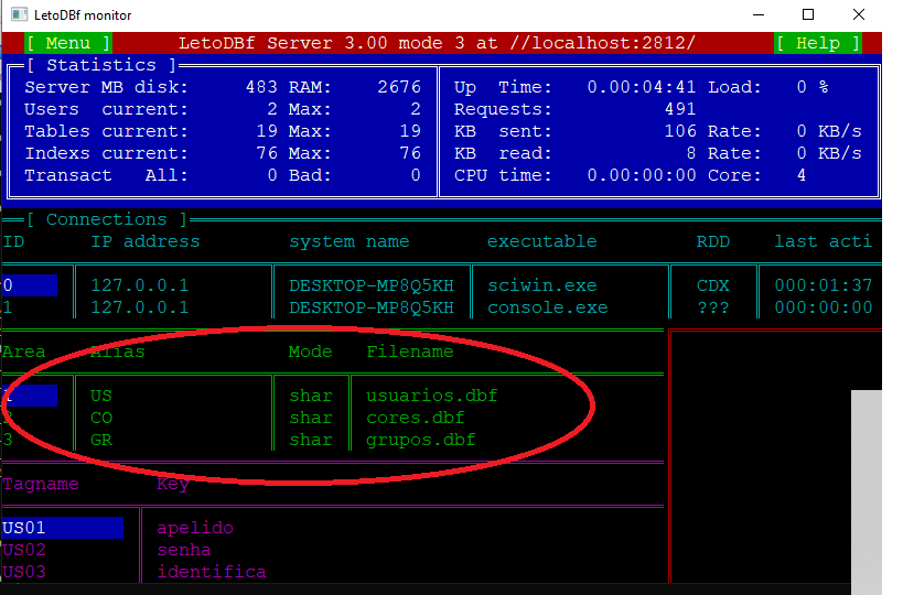 Veja ai que tem como saber IP/DBF aberto por qualquer usuário logado pode olhar fonte(funções) do programa (console.exe do leto)e colocar DIRETO no seu .EXE!