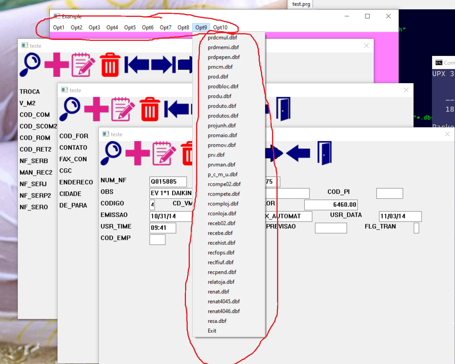Já criou automático o menu pra cada DBF, e cada opção já é a tela para o DBF selecionado.
