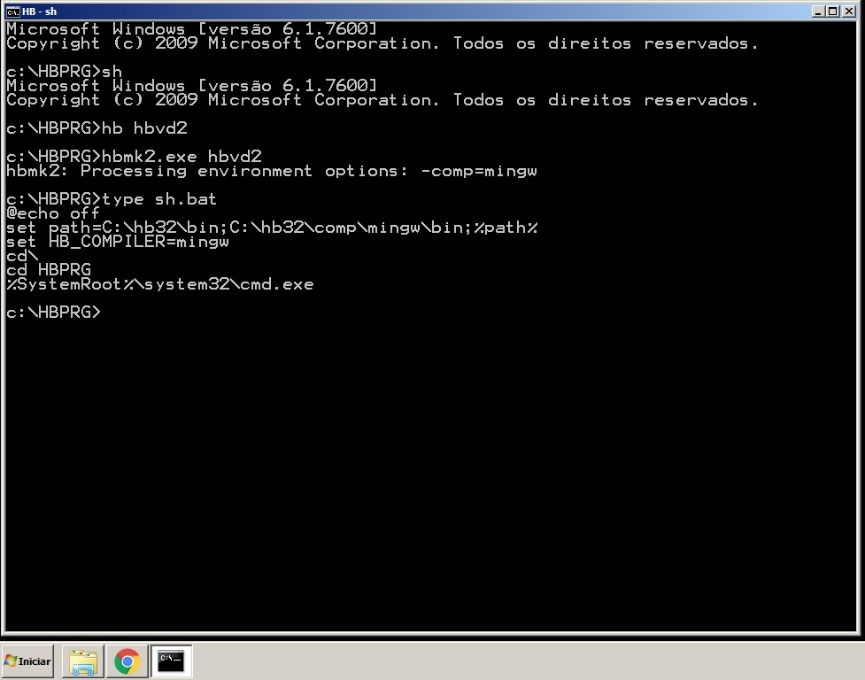 Aí foi só acrescentar o comando SET HB_INSTALL_PREFIX:=C\hb32 no meu sh.bat (listado acima) e tudo voltou ao normal.