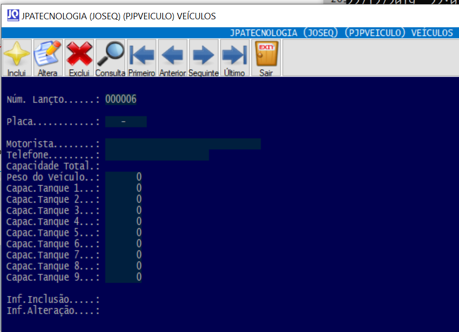 LOCAL midVeiculo, mvePlaca, mveMotori, mveTelefone, mveCapacTot, mveCapac1, mveCapac2, mveCapac3