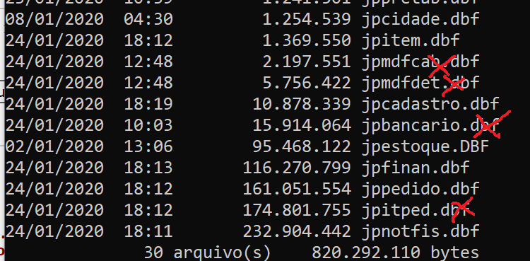 Ainda estou eliminando JPNOTFIS.DBF, esse é o foco central, porque é o maior DBF de todos.