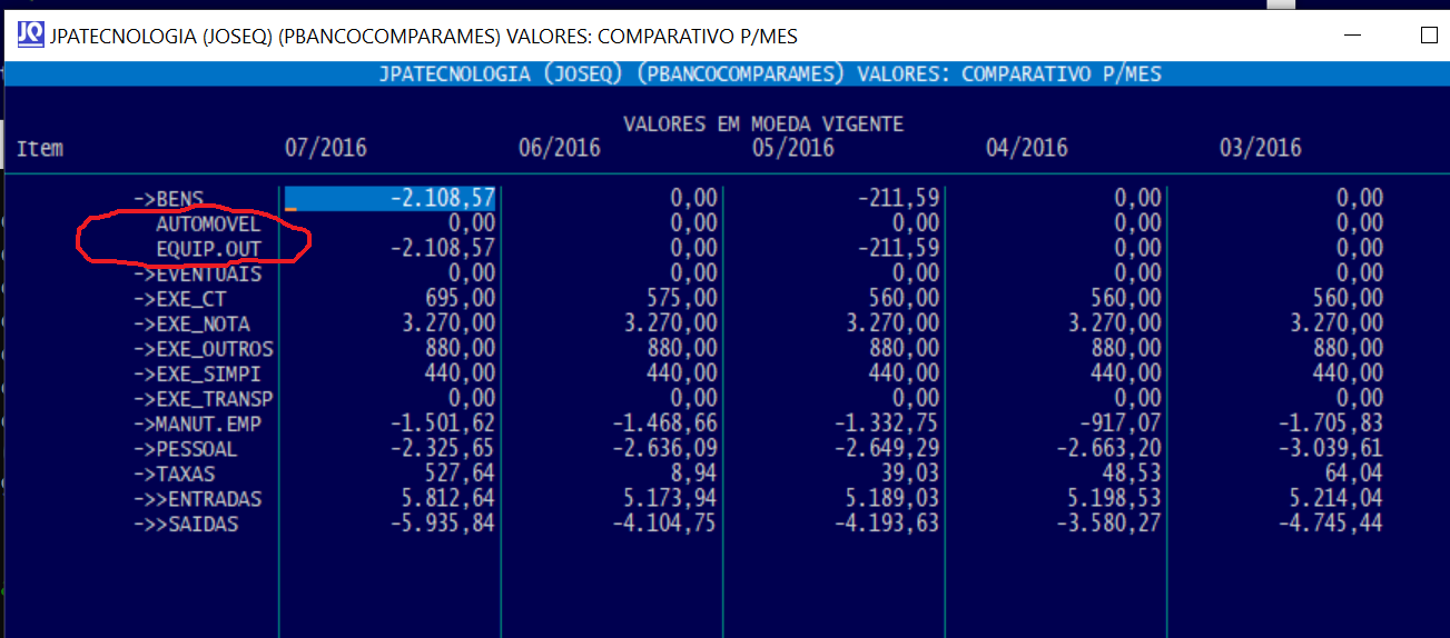 PBANCOCOMPARAMES - COMPARATIVO MES A MES