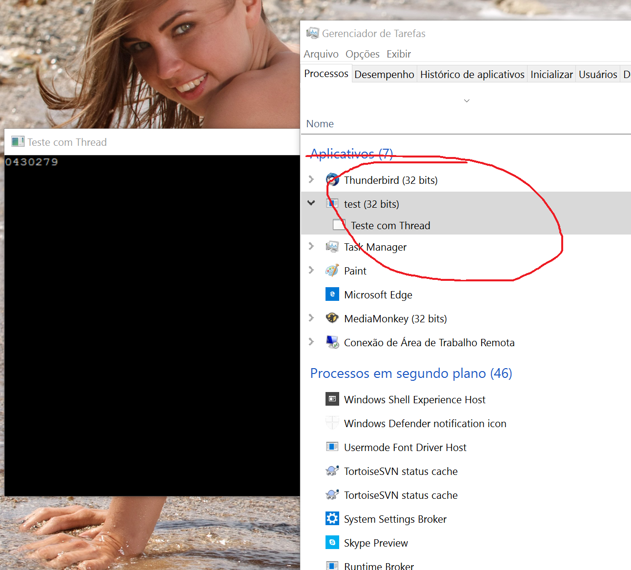Nesse caso se você clica na janela principal onde executa a thread dá o Não está respondendo, a janela da thread programa separado tá ok, deu pra entender ?