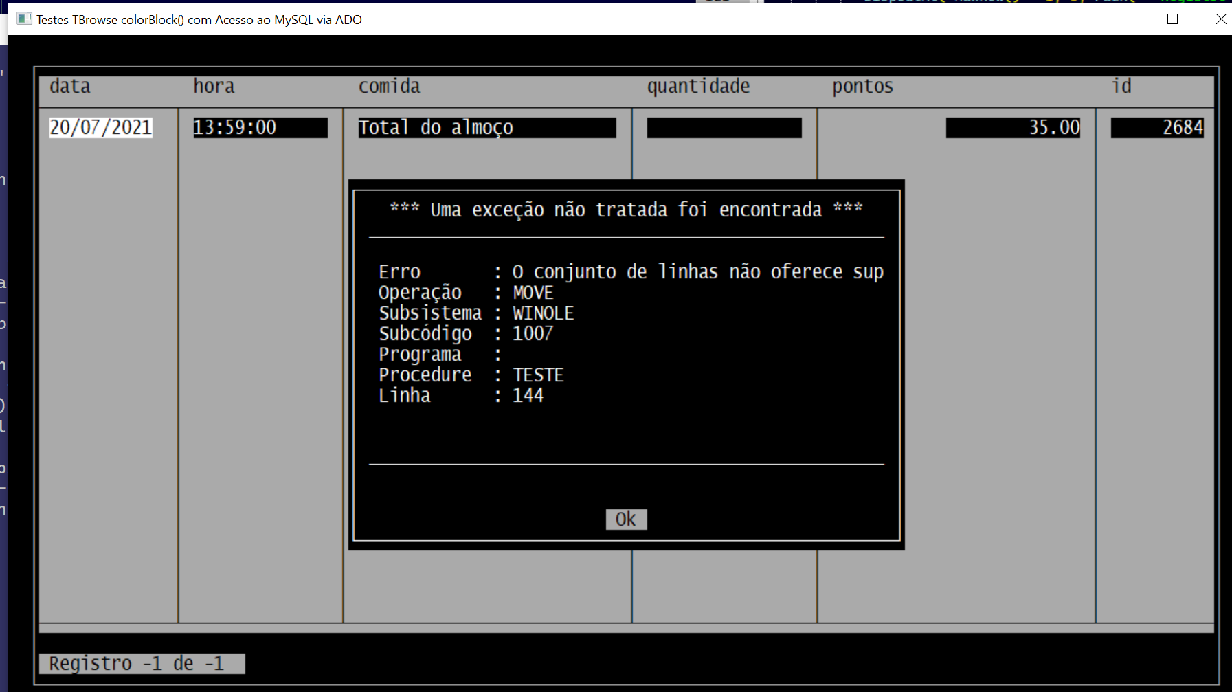 Vou postar o código completo, tirando apenas o que não interessa para esta questão. Já adianto que esta função está mesmo um frankstein, porque, por enquanto, é a única forma que eu consegui fazer funcionar um tbrowse aqui.
