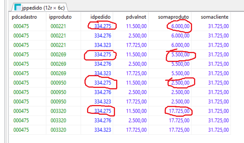 Se estou somando produto/cliente, então não é o mesmo que somar o pedido.