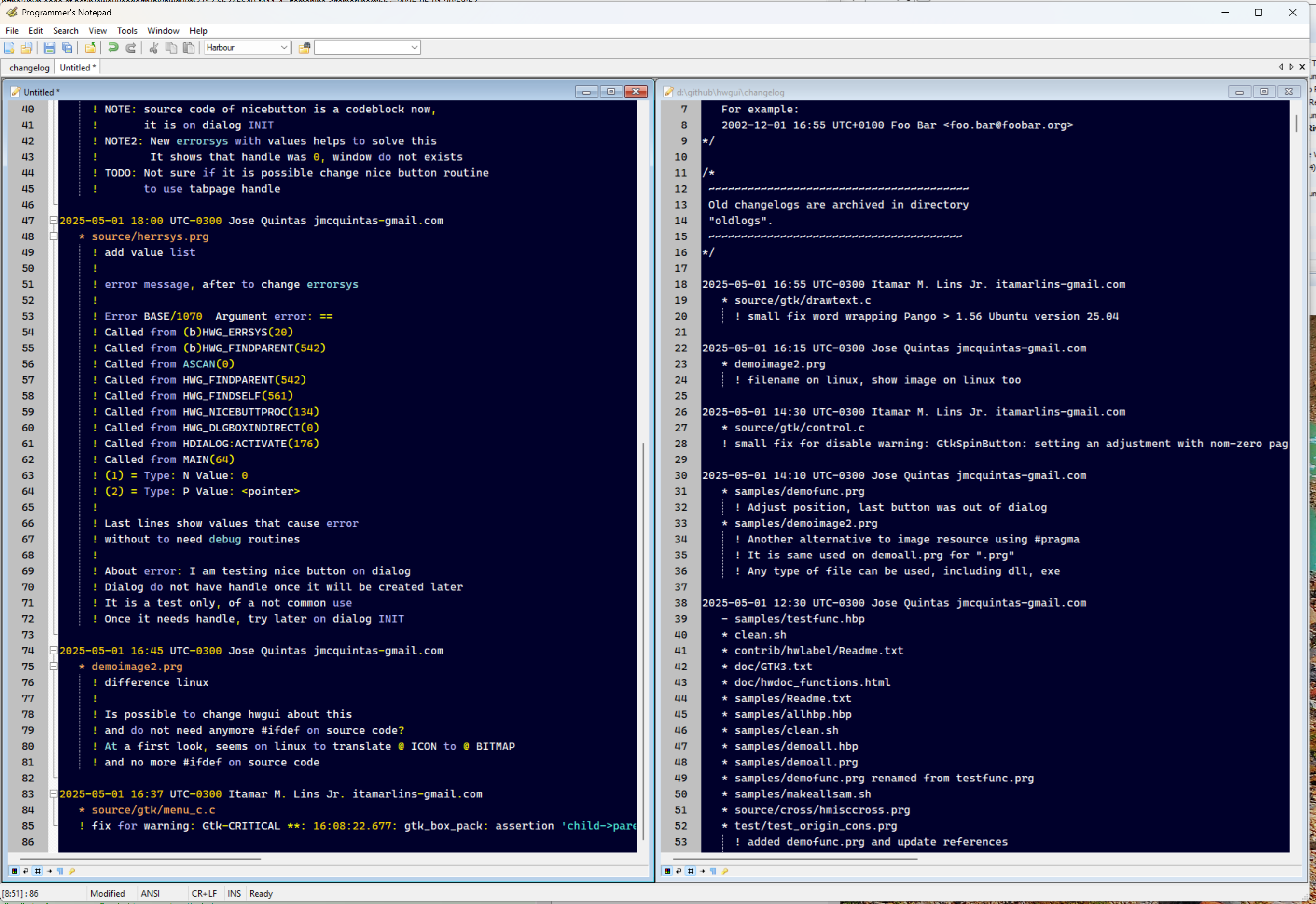 Tava com algumas coisas no editor de textos, incluindo o changelog.