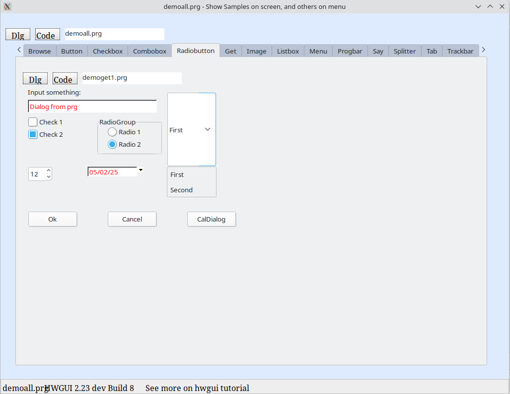 Lembre-se que esse botão DLG roda o mesmo exemplo fora da tab.