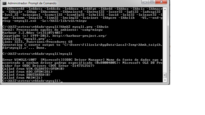 Parece que não estou com a versão correta do Harbour para isso, né? Uso o hb32, Windows 7.