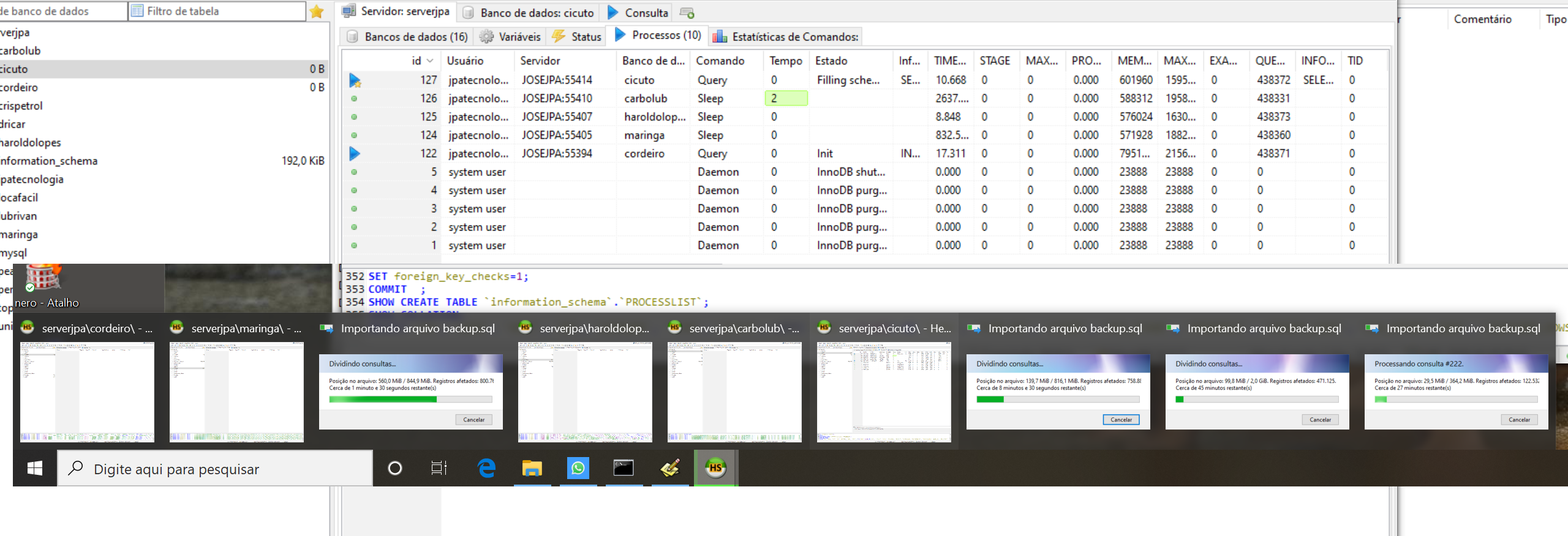 Restaurando backups do Mariadb.