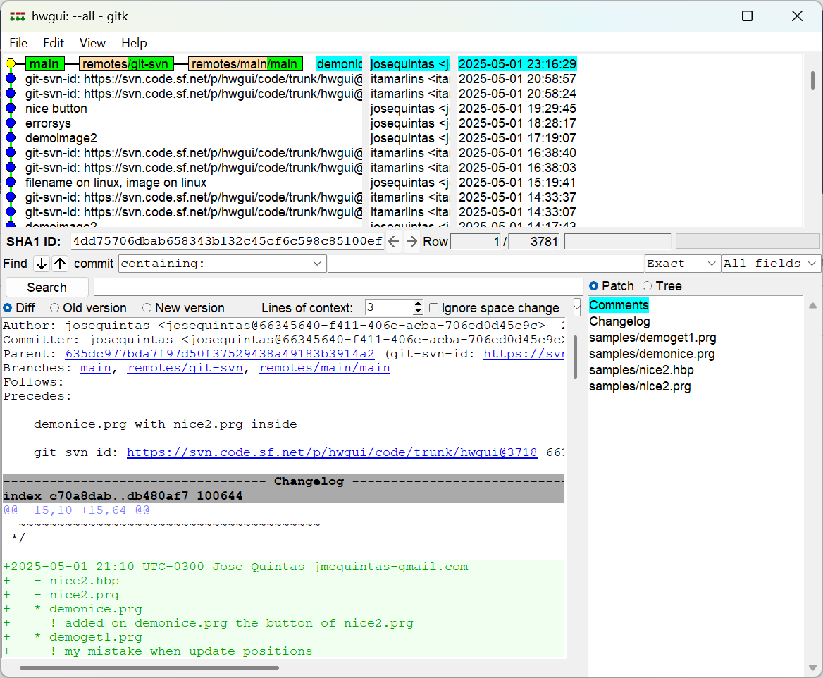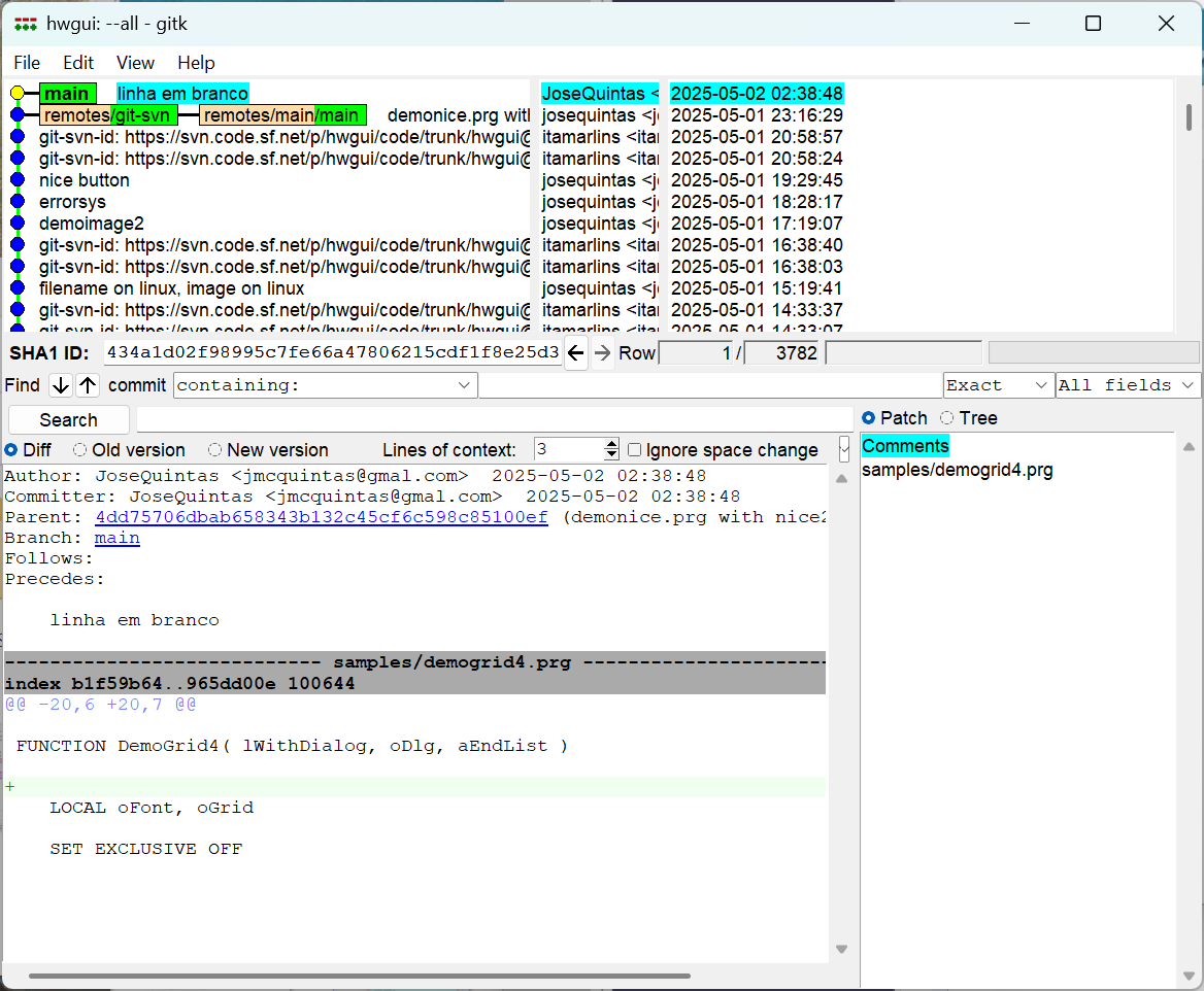 É mesmo como se fosse comparar discos de backup, mas pelo git tá tudo sempre na mão.