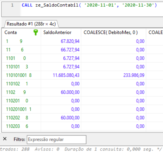 CREATE PROCEDURE ze_ContabilDiario( nMes INT(11) )