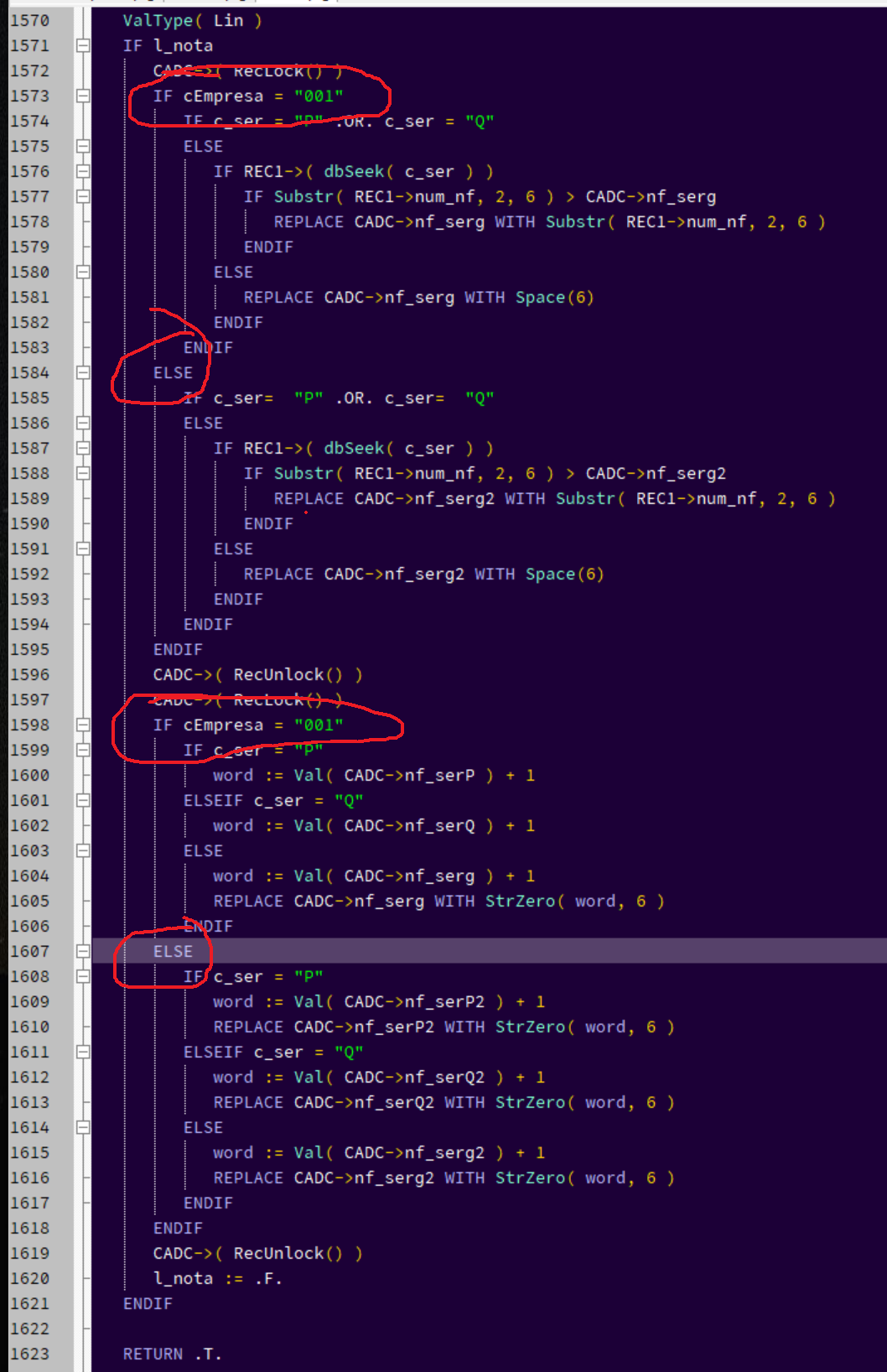 Então vamos organizar mais. Deixamos as análises pra P e Q, e o resto fica dentro do ELSE.