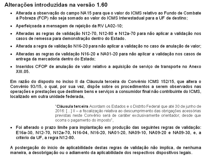 E algumas das regras de validação que haviam colocado, vão ficar suspensas até junho/2016, porque a lei diz assim.