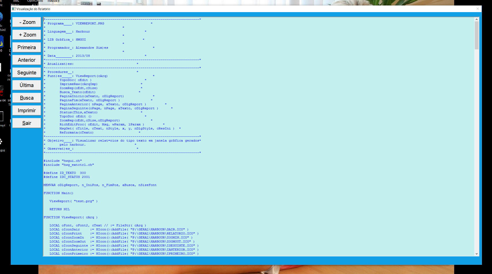 * Objetivo____: Visualizar relatórios do tipo texto em janela gráfica gerados*