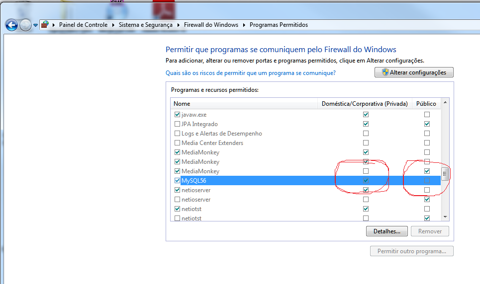 É na segunda coluna onde aparece o MySQL56 (mesmo nome que apareceu na configuração).