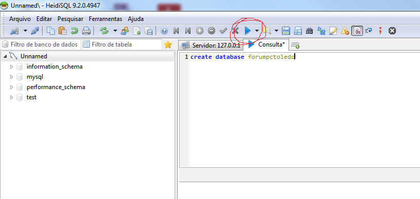 Agora o botão atualizar pra ela aparecer na tela do HeidiSQL.
