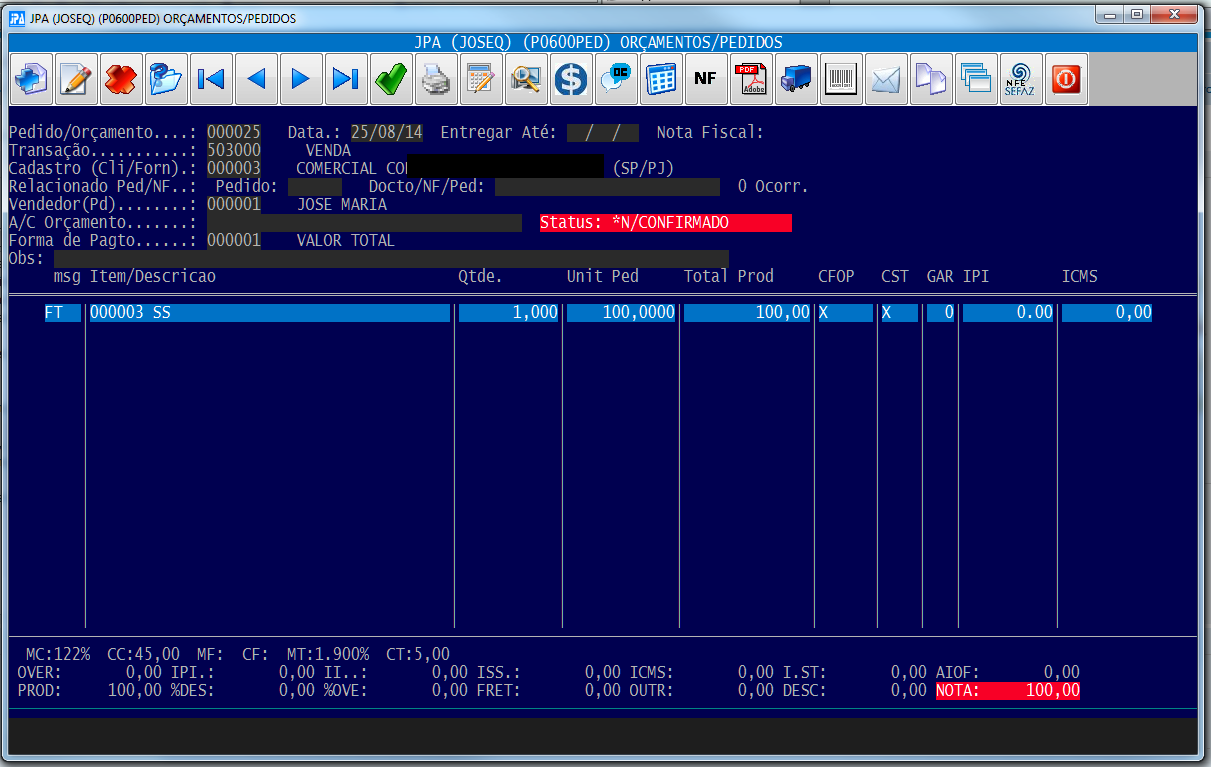 A tela de pedidos é um pouco mais "recheada" e com mais opções, mas tudo bem.