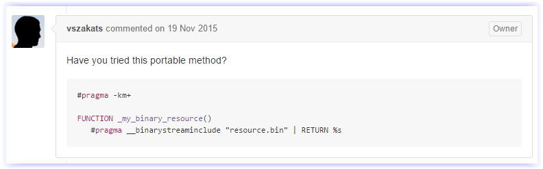 #pragma __binarystreaminclude "message.wav" | RETURN %s