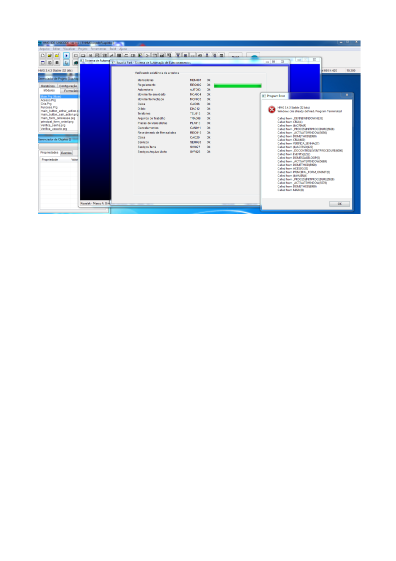 lembrando que a janela cria é modal. da erro em cria na linha 4. Essa janela apenas mostra os arquivos sendo criados e era pra voltar para a principal.