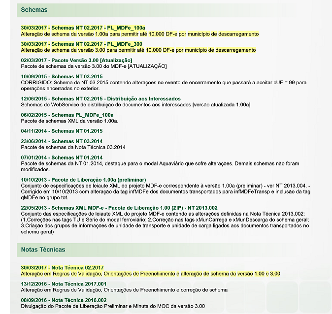Alterações MDFE 1.00 e 3.00