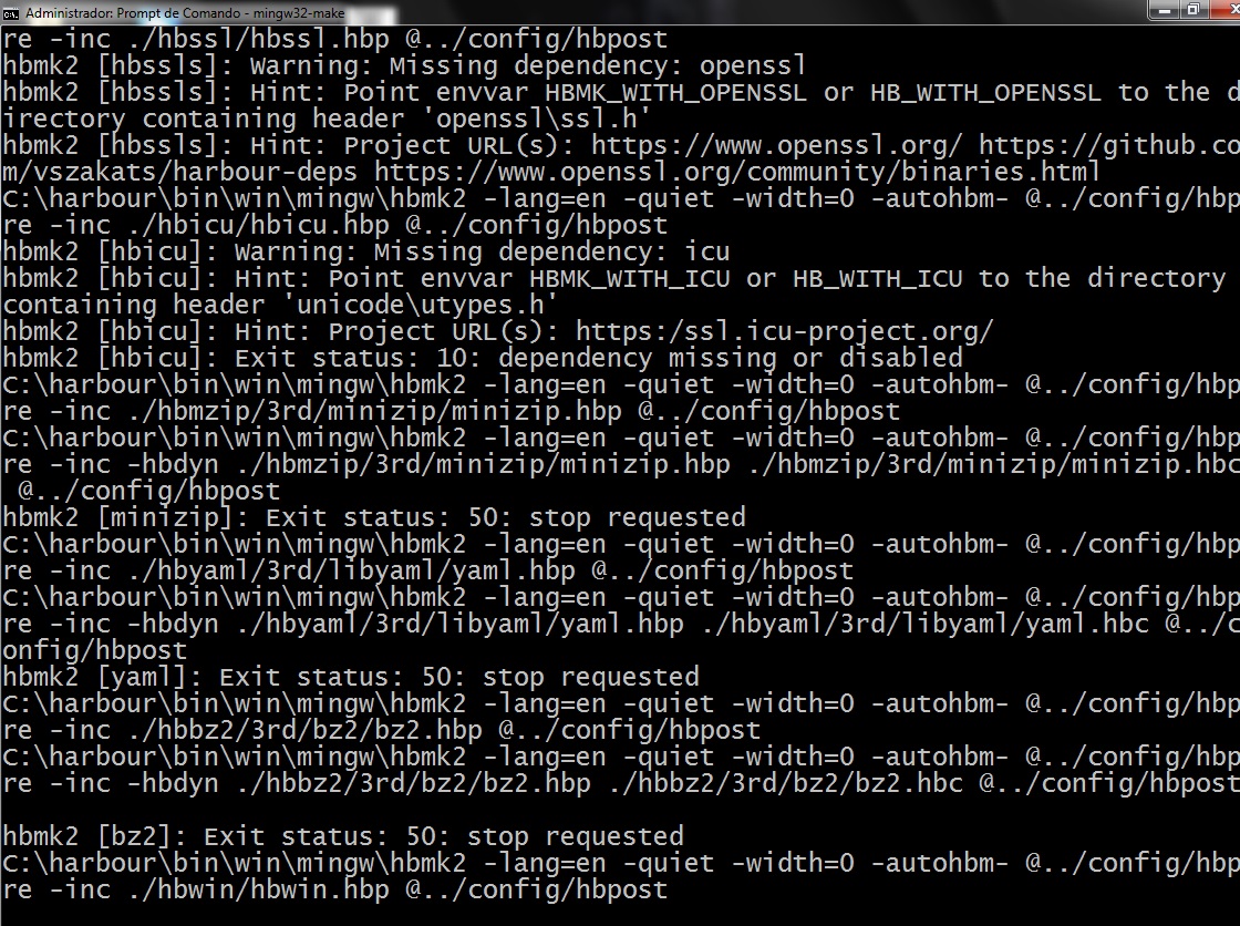 Em tempo esses "warnings" são da criação do harbour fork (hbmk2, libs, ...etc...)