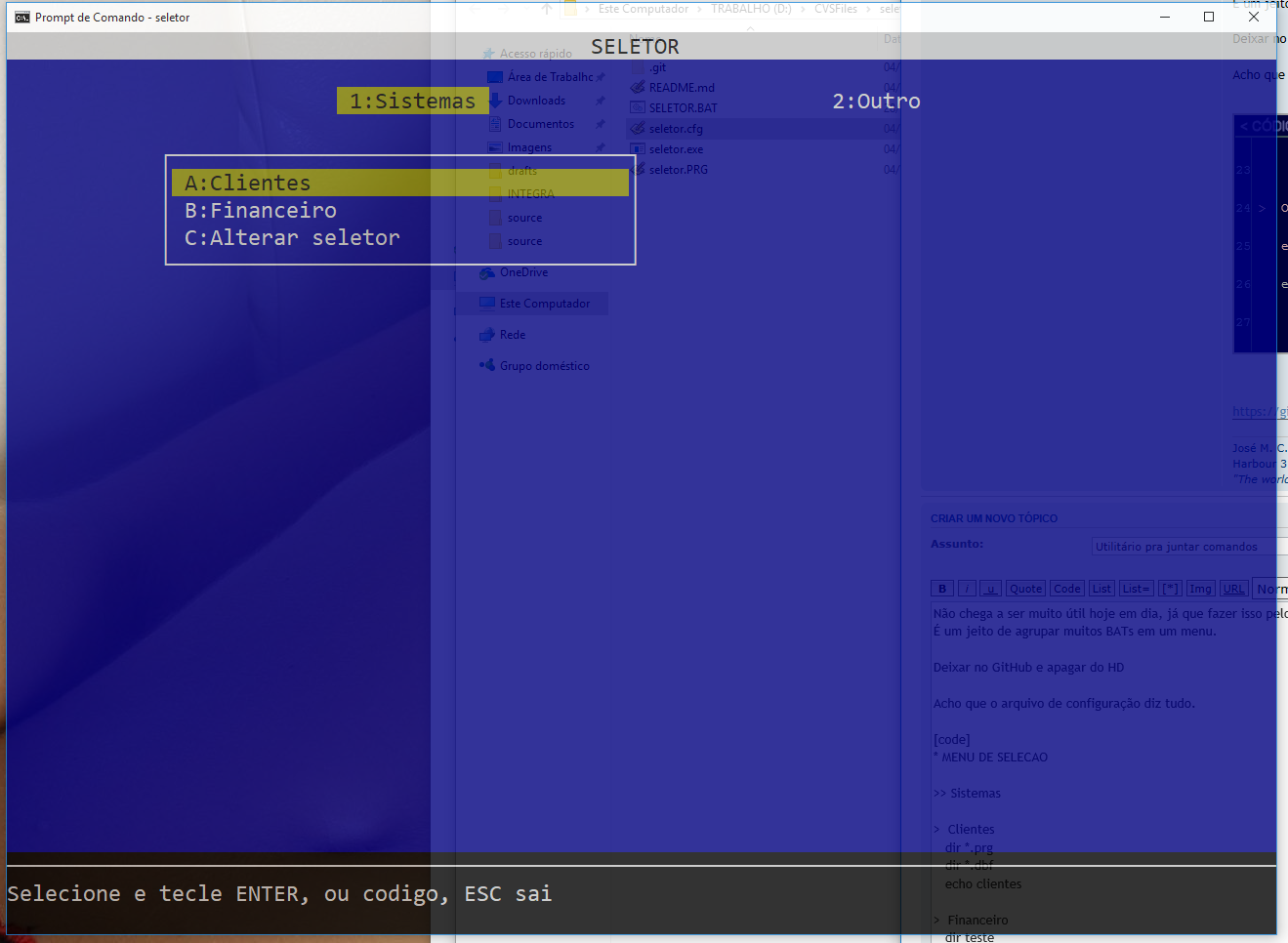 A partir dessa configuração, o utilitário gera o menu e executa os comandos.