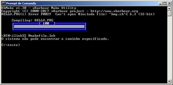 Estou tentando compilar o programa básico 'hello world' utilizando o hbmake e xharbour.