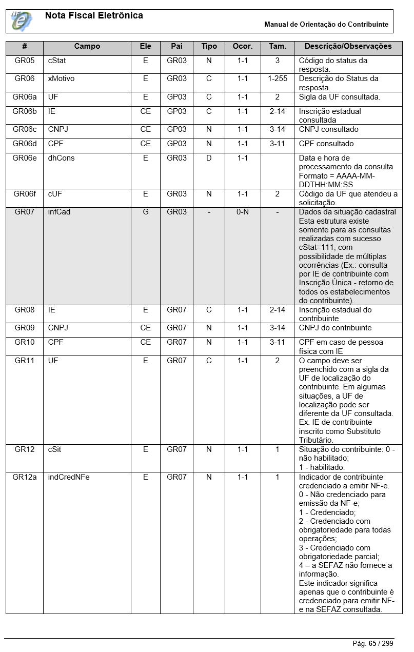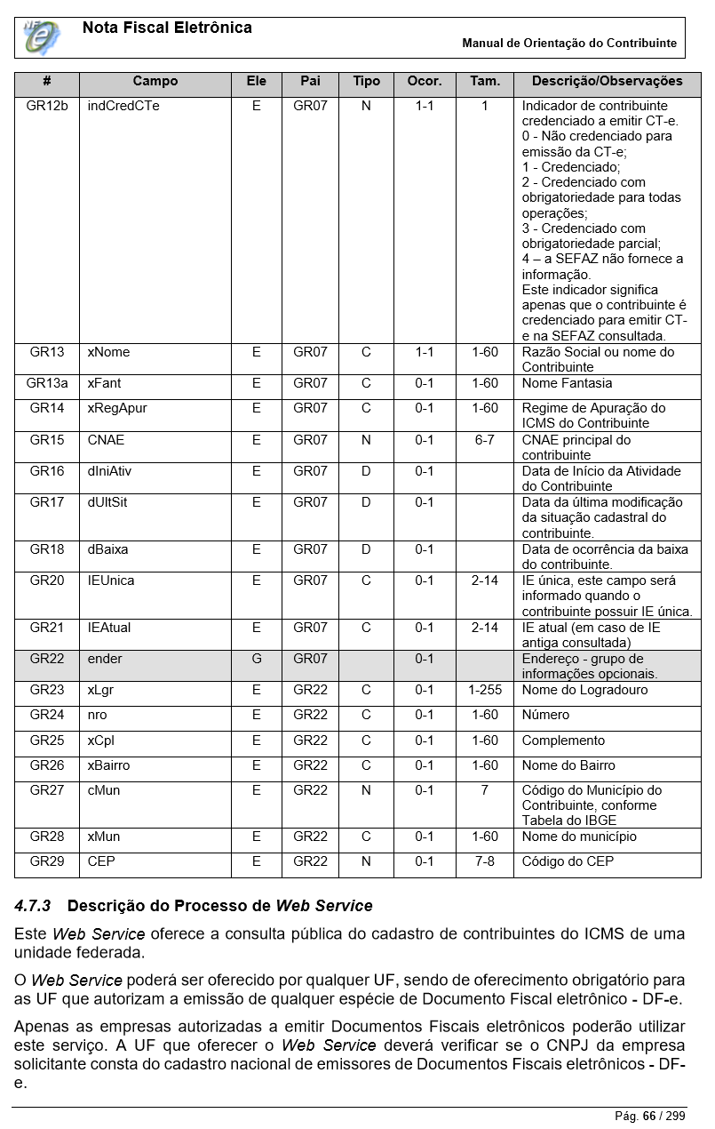 O serviço de consultar cadastro faz parte dos serviços da nota fiscal eletrônica.