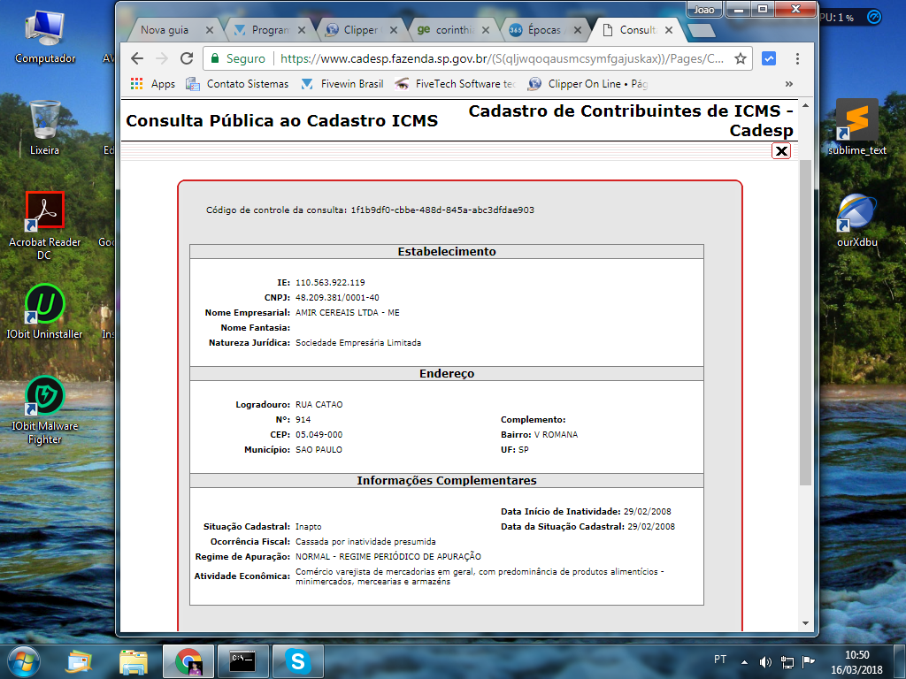 Dados do Sintegra de São Paulo