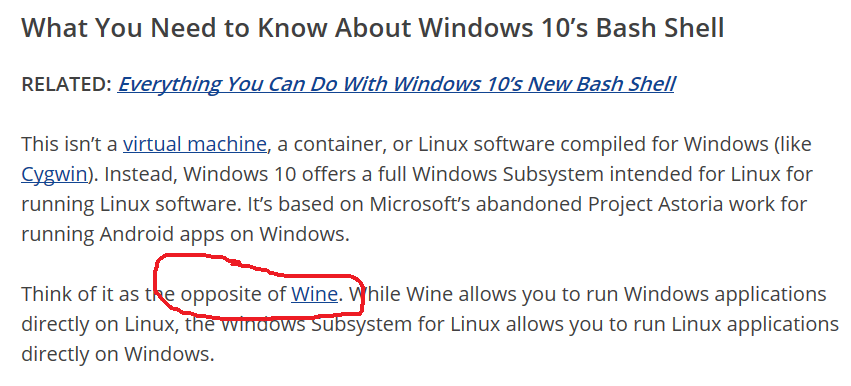 Como explicação, seria o oposto do Wine, permite rodar aplicativos Linux no Windows.