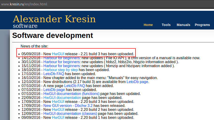 Apenas criei um snapshot do sourceforge, uma cópia dos fontes atuais da HWGUI.