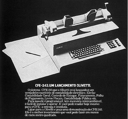 E também usando uma máquina de contabilidade Olivetti, se não me engano cfe 243, pra fazer balancetes contábeis, coisa que não fazia parte da programação normal dela.