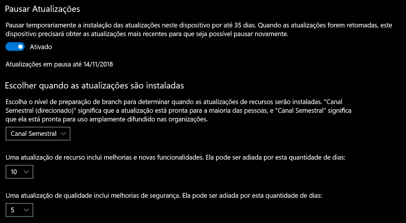 2) Dá pra adiar atualizações comuns e/ou de segurança: a dúvida é se num caso desses que tem correção depois, se a correção vai ser adiada também.
