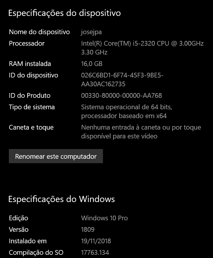 Mudou aonde vê a versão do Windows.