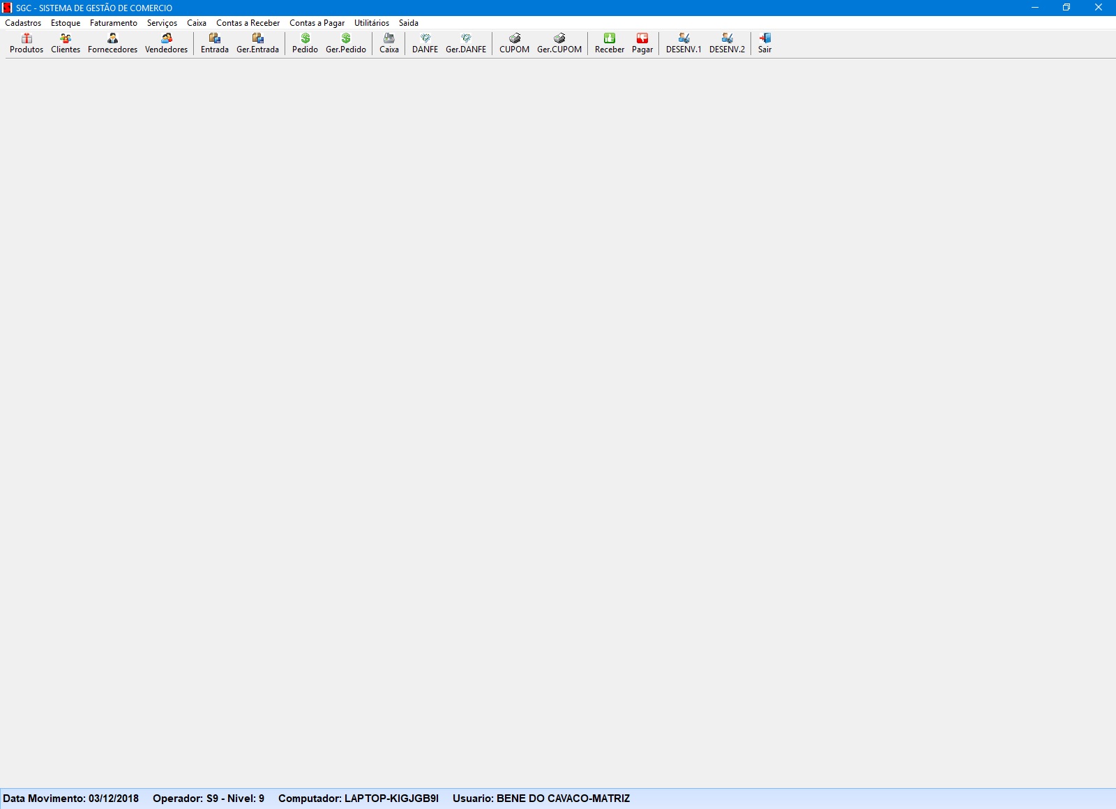 hwg_WriteStatus( oMENUPRINC,1,"Data Movimento: "+dtoc(M->DAT_HOJE)+" Operador: "+RTRIM(M->OPERADOR)+" - Nivel: "+STRZERO(M->NIV_ACESSO,1,0)+" Computador: "+rtrim(hwg_GetComputerName())+" Usuario: "+hlusuario( ) )