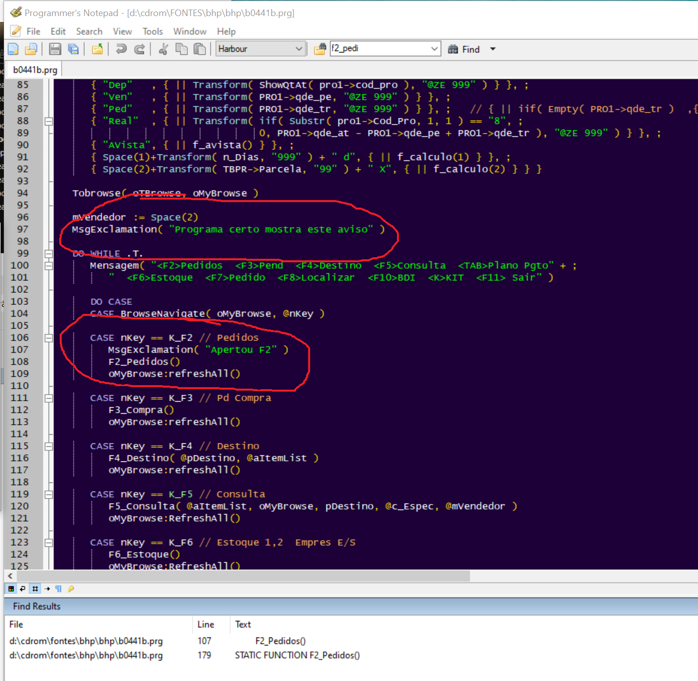 Isso foi depois dos CASE .F., agora trocou F2 a F5 por retornar código ascii inválido.