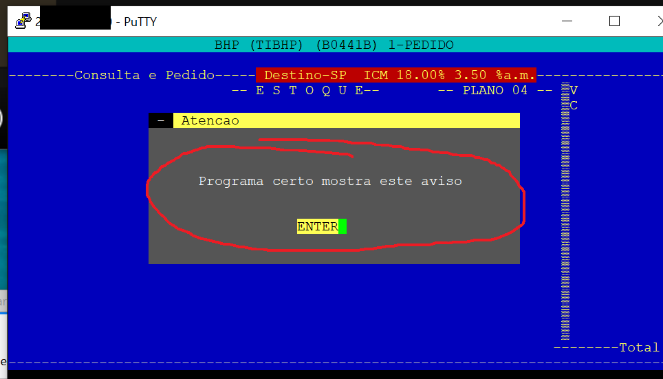 - entra no programa mostra "Programa certo mostra este aviso".