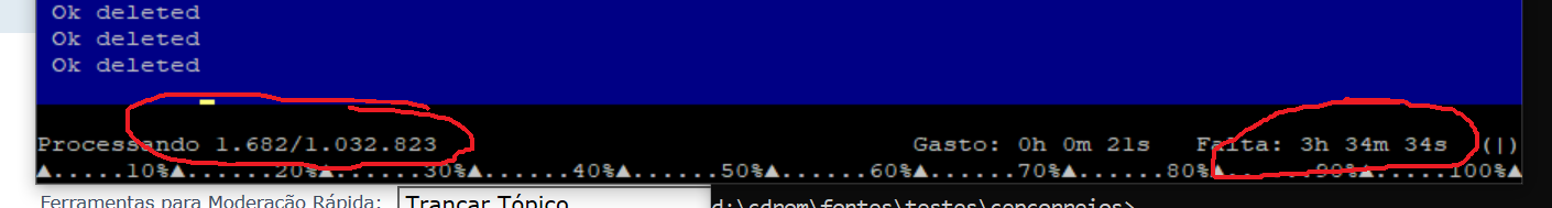 Atualizando 1 milhão de CEPs sem índice, previsão 96 horas.