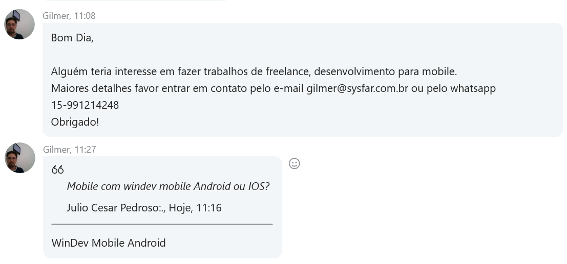 Mas nunca mudou o texto, é sempre "alguém fez isso", "alguém fez aquilo", "alguém, alguém", "ninguém daqui gosta de windev", "tchau tchau".