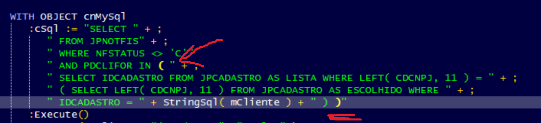 Não sei se é normal em outros editores de texto, mas indicar o abre/fecha parêntesis ajuda até na hora de montar o comando SQL.