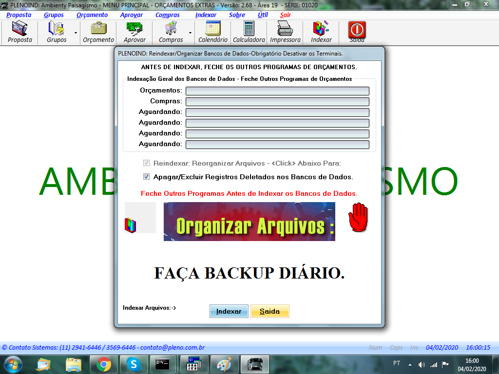 CAPTION "PLENOIND: Reindexar/Organizar Bancos de Dados-Obrigatório Desativar os Terminais."