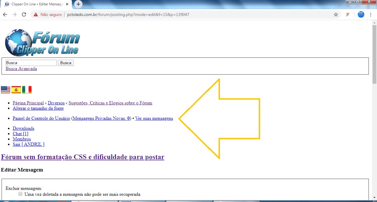 E para conseguir postar tenho que desativar o BBCode e Desativar Smilies.