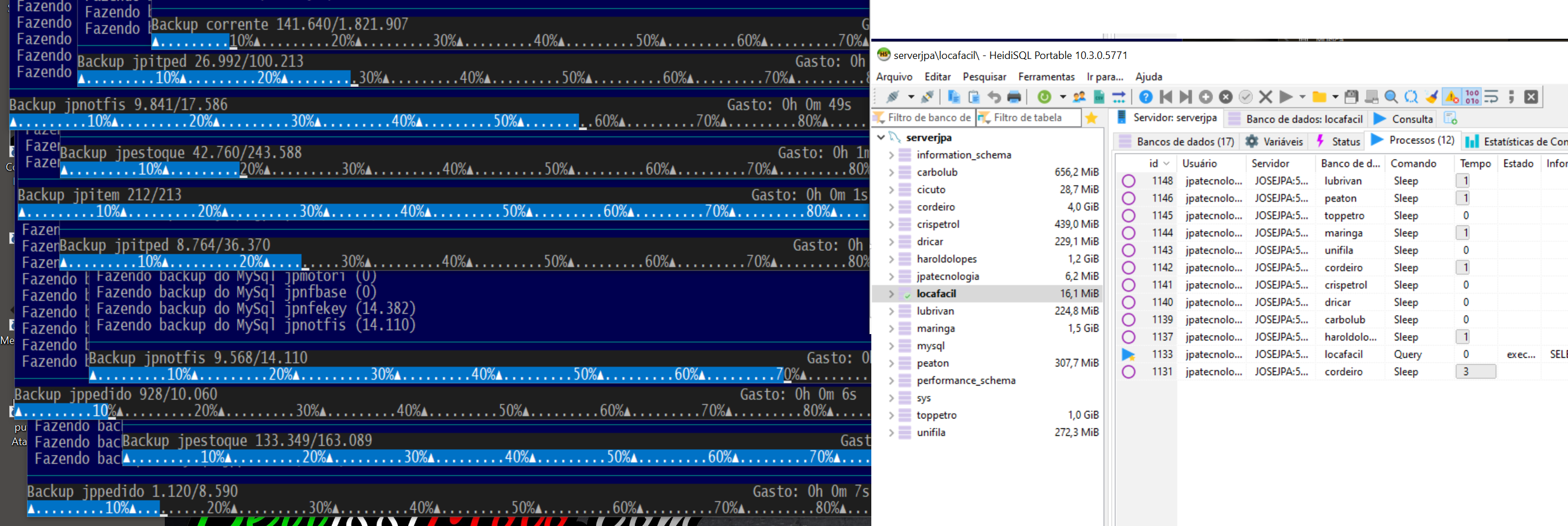 Vários backups do MySQL, e nem dá tempo do servidor registrar o processo.