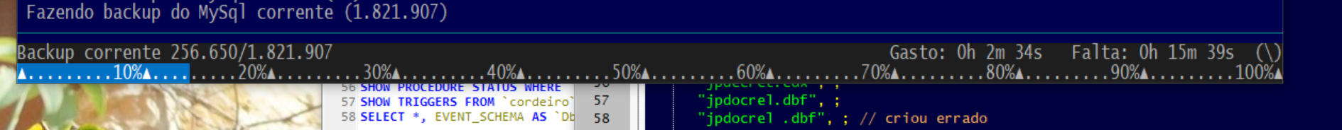 Mas como estou testando conversão de versão, e NÃO retiro o backup mesmo do teste, tenho que esperar o backup.