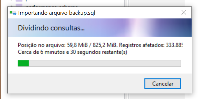 Menos de 2 milhões de registros, e a previsão é 15 minutos...