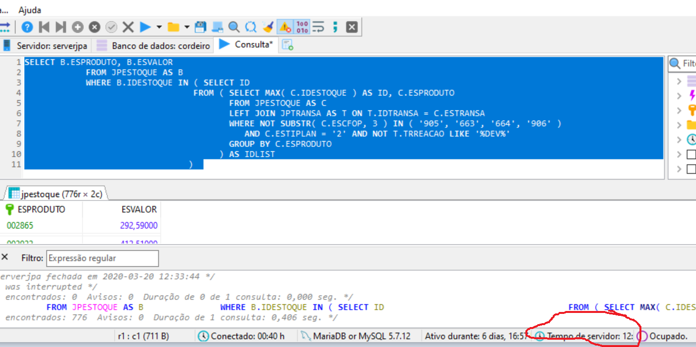 Erro executando comando:-2147217900 [ma-3.1.6][5.7.12-log]Unknown column 'ULTIMOPRECO.ESVALOR' in 'field list'
