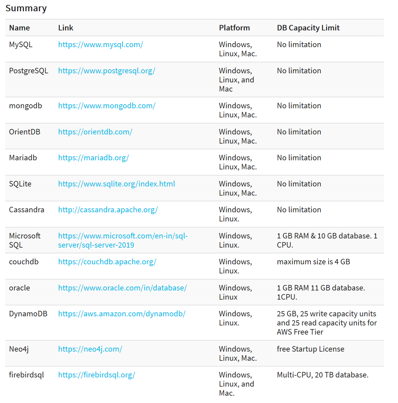 MySQL tem em tudo que é lugar, tudo que é site te dá banco MySQL, vai encontrar referência em tudo que é lugar, portanto recomendo MariaDB, que é o MySQL grátis.