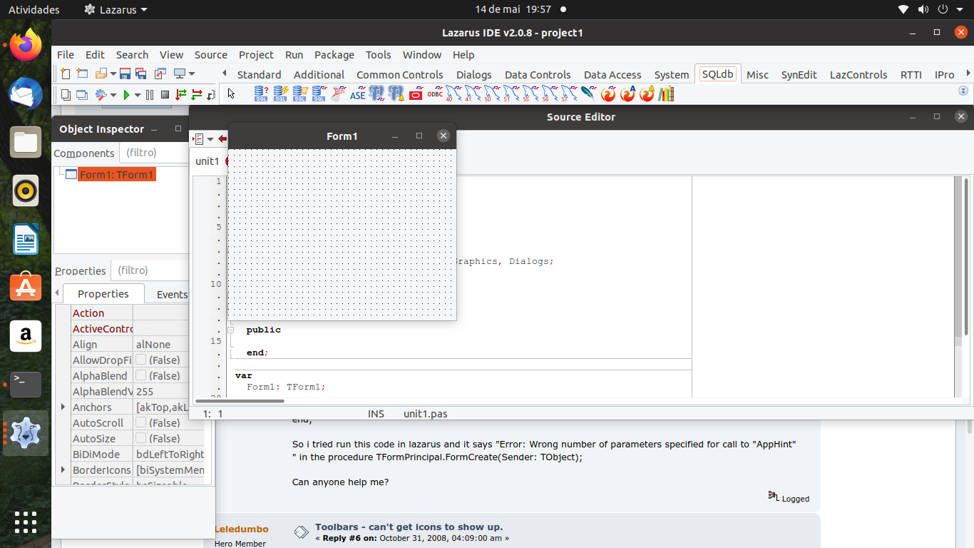 Estou vendo o Lazarus, o progresso que fez todo esse tempo, quantas pessoas estão usando, etc.. Só na parte de conexão com DB, já tem uma infinidade, relatórios etc... tudo ok com milhões de usuários e exemplos pra tudo que é controle que está na RAD(IDE). Até o Linux, o Ubuntu está melhor que o Windows 10 em muita coisa. O PrintScreen por exemplo que tirei, já gravou na pasta \Download\... Um arquivo com o nome "Captura de tela de 2020-05-14 19-57-18.png"