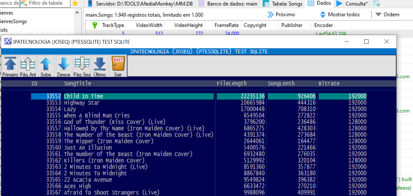 Acessando a biblioteca do MediaMonkey, em formato SQLite3.