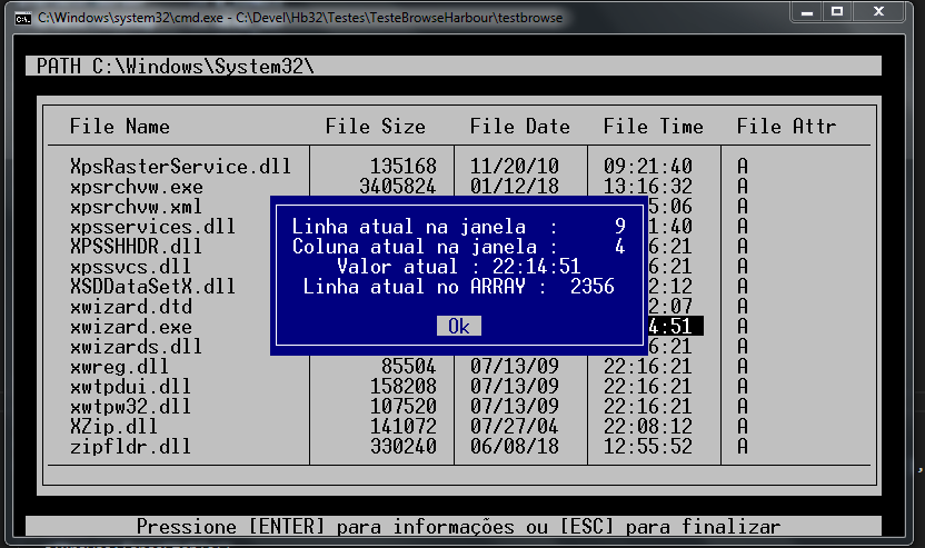 DispOutAt( MaxRow(), 1, PadC( " Pressione [ENTER] para informações ou [ESC] para finalizar", MaxCol()-2 ), "N/W" )